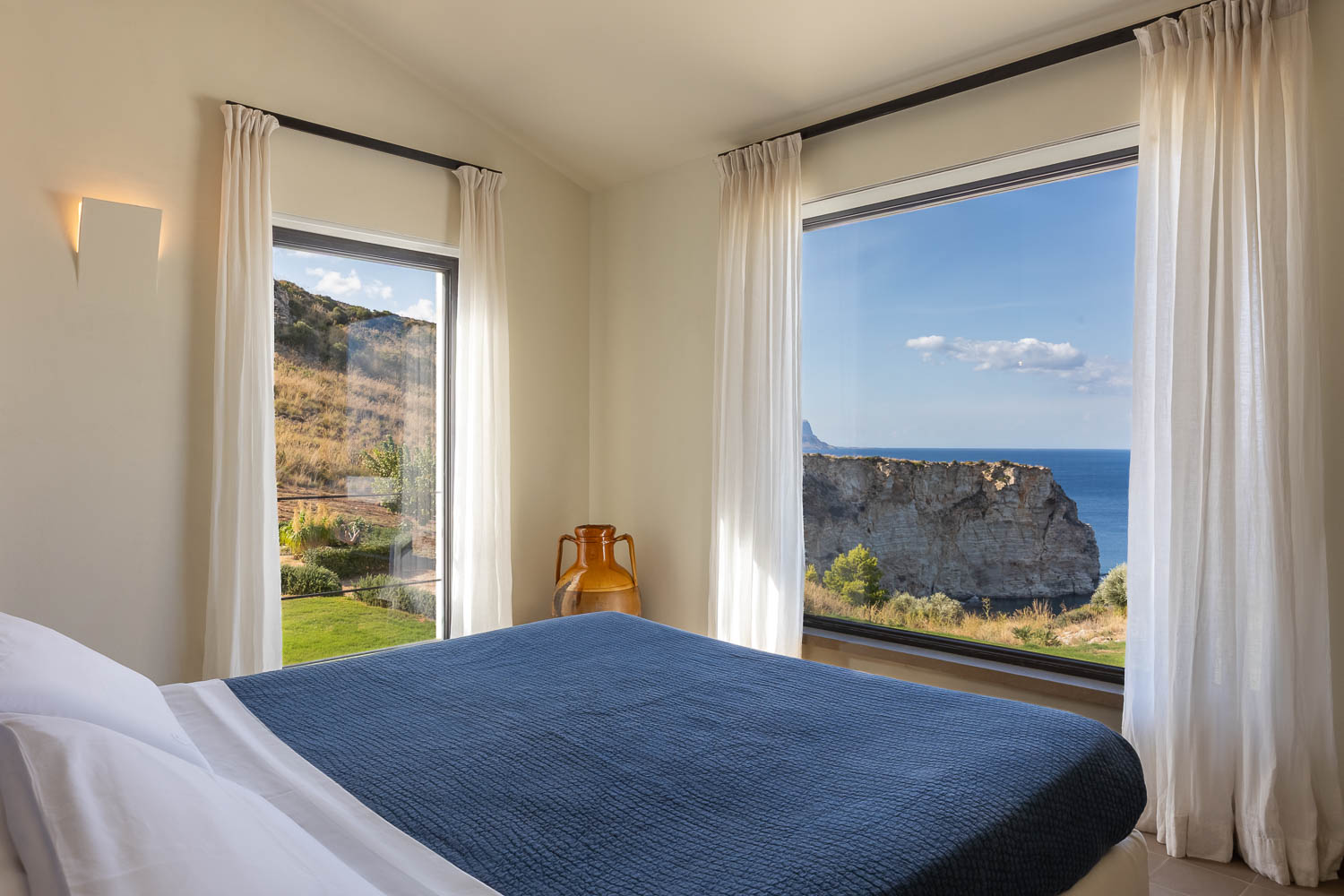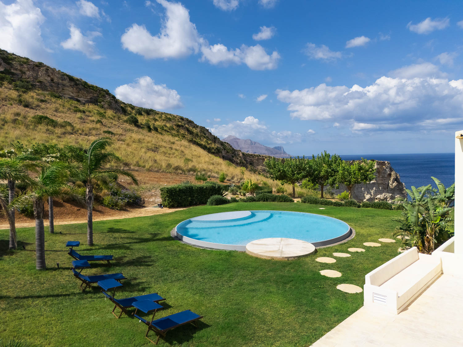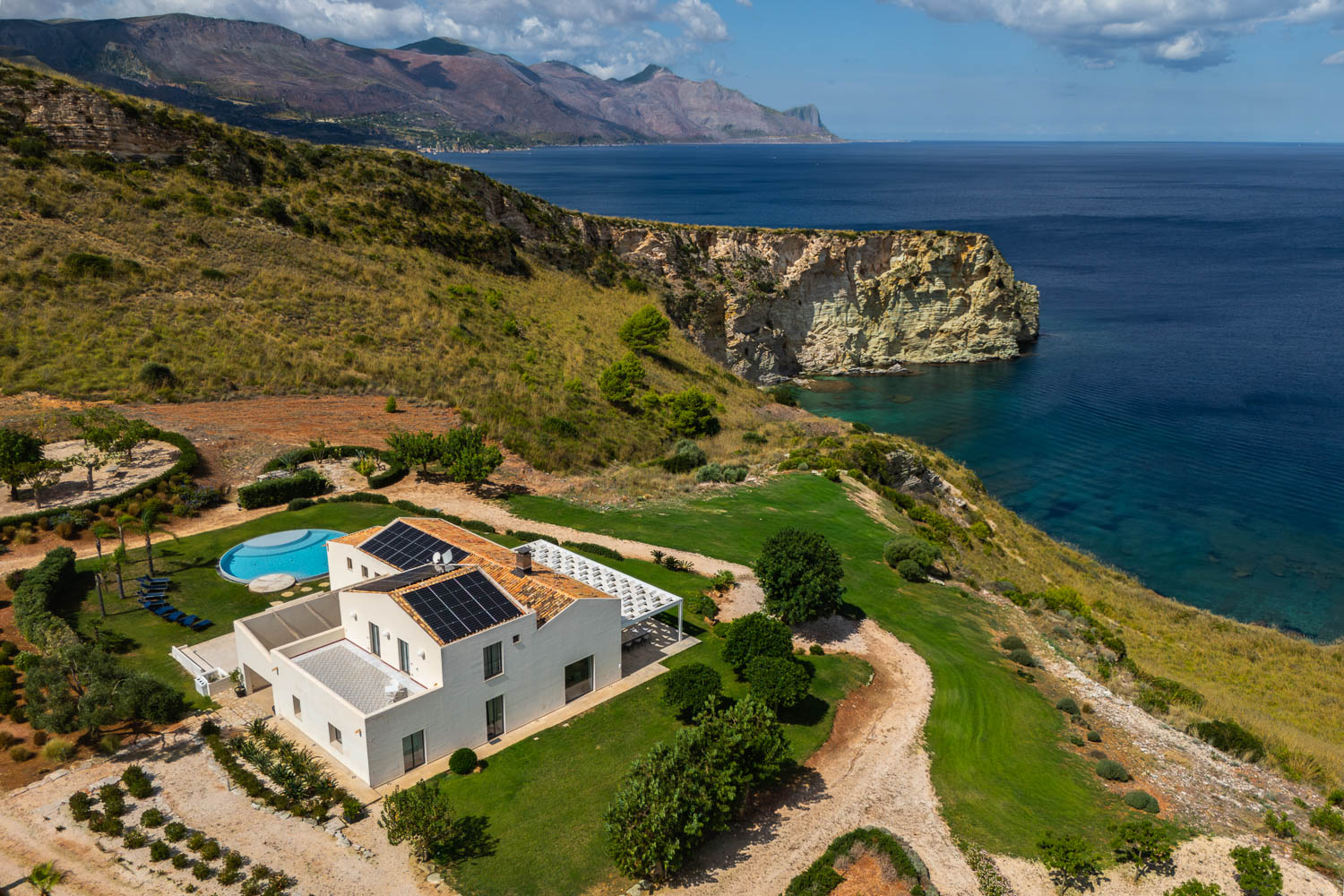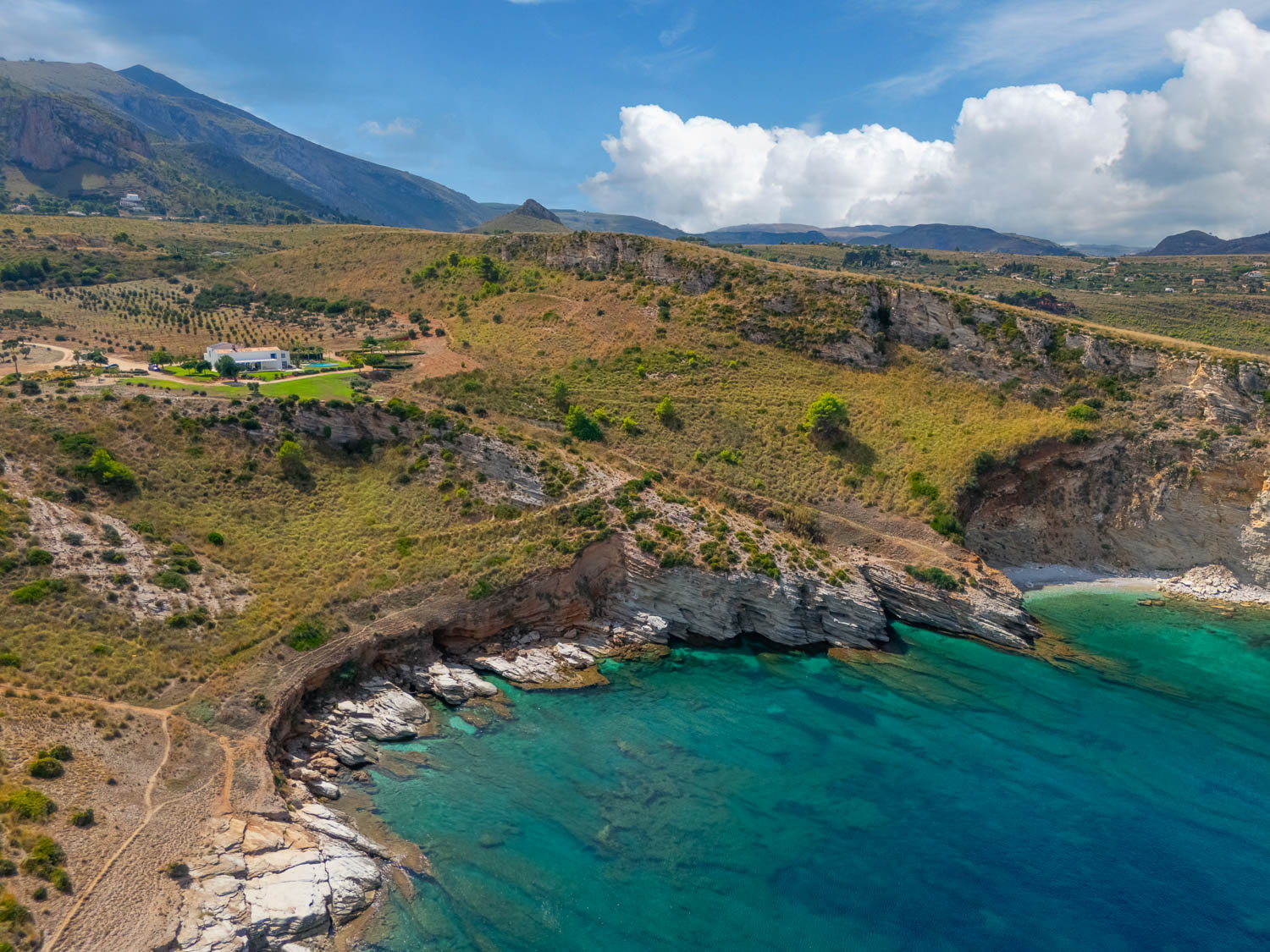 La proprietà si sviluppa all’interno di una tenuta esclusiva a picco sul mare, a pochi chilometri dalla splendida Riserva Naturale dello Zingaro.