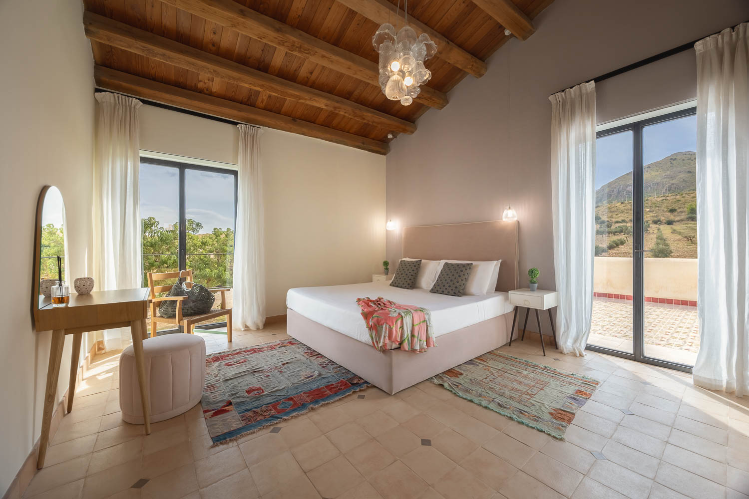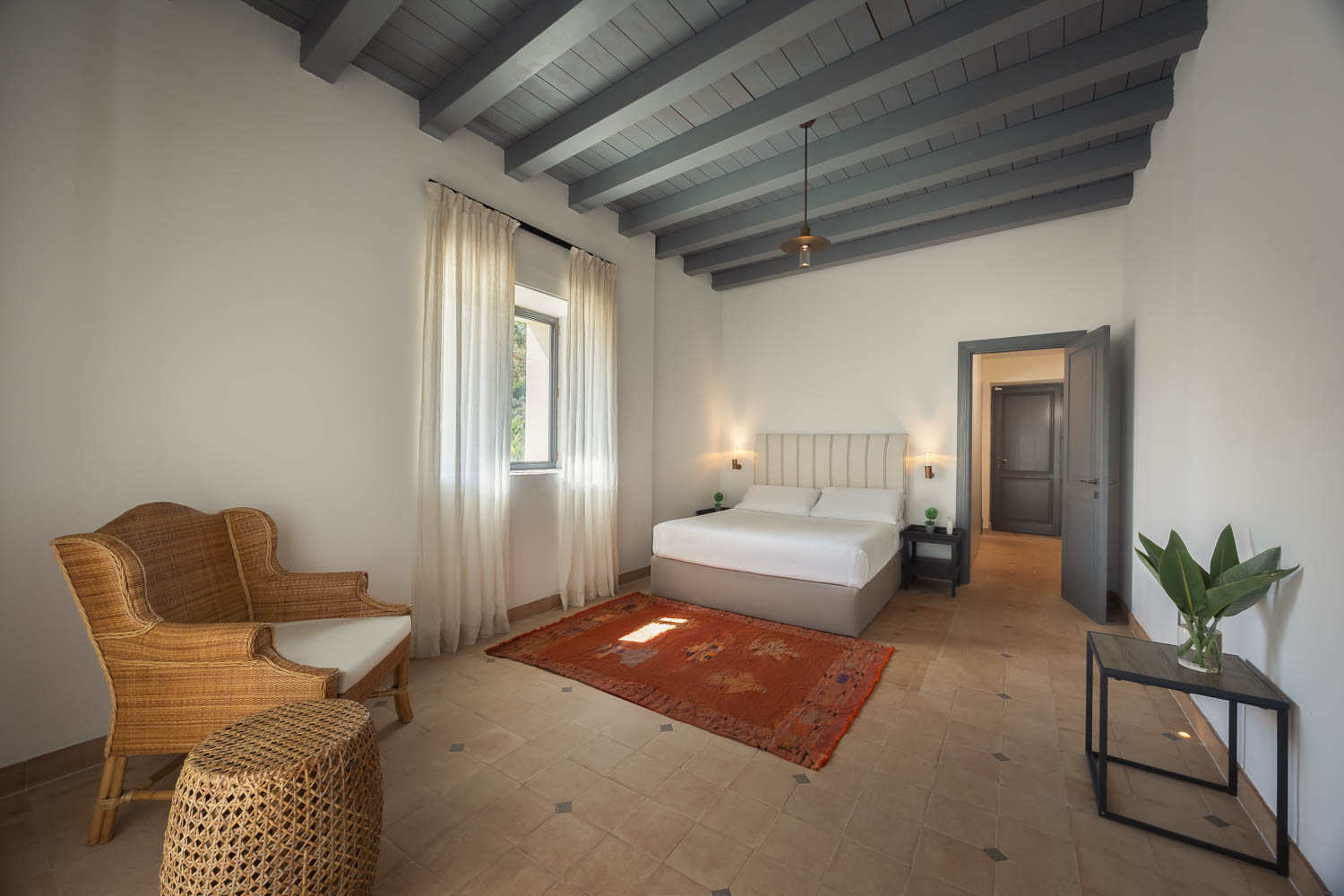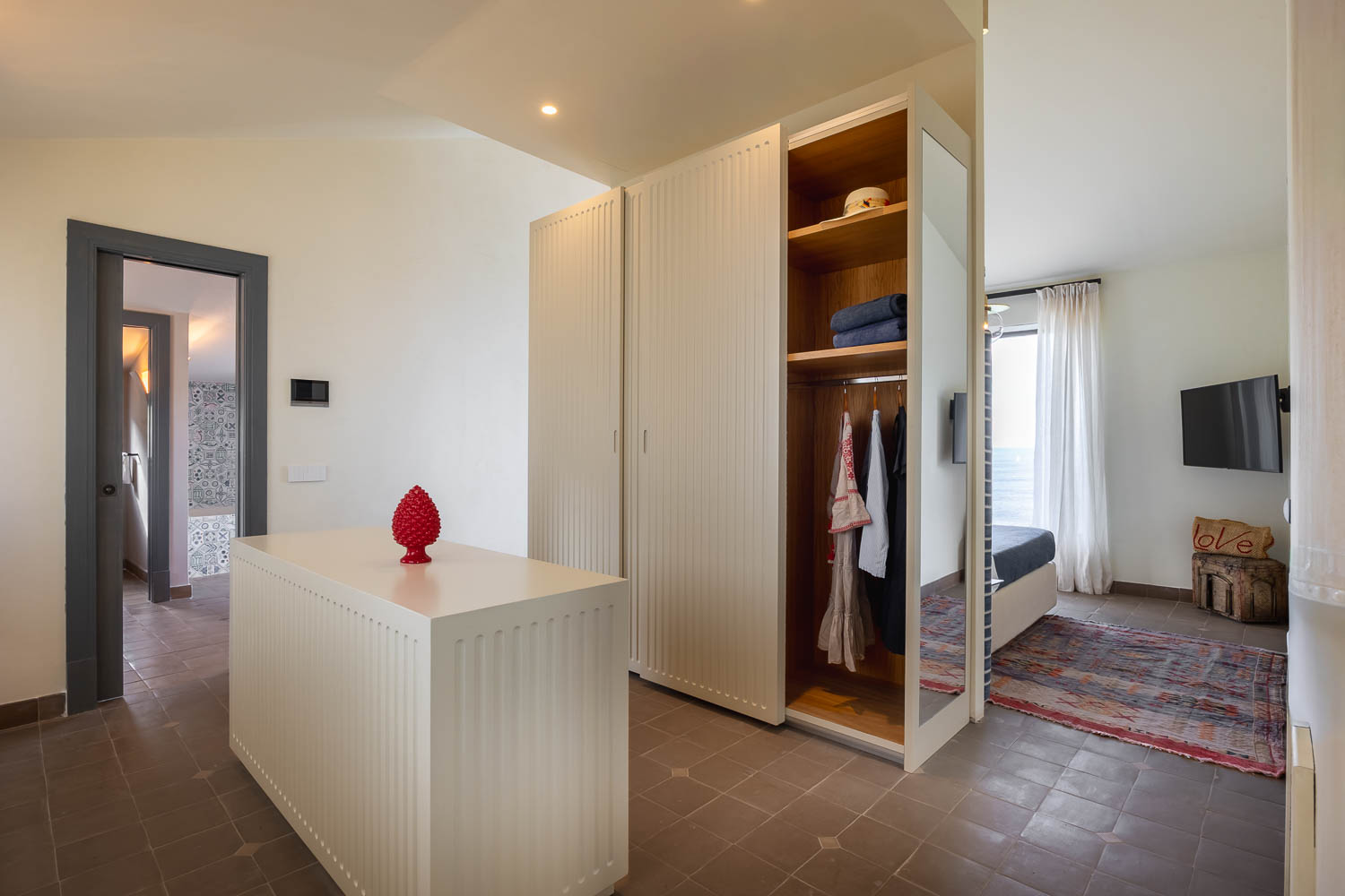 4 camere matrimoniali arredate con stile essenziale e vista sul mare