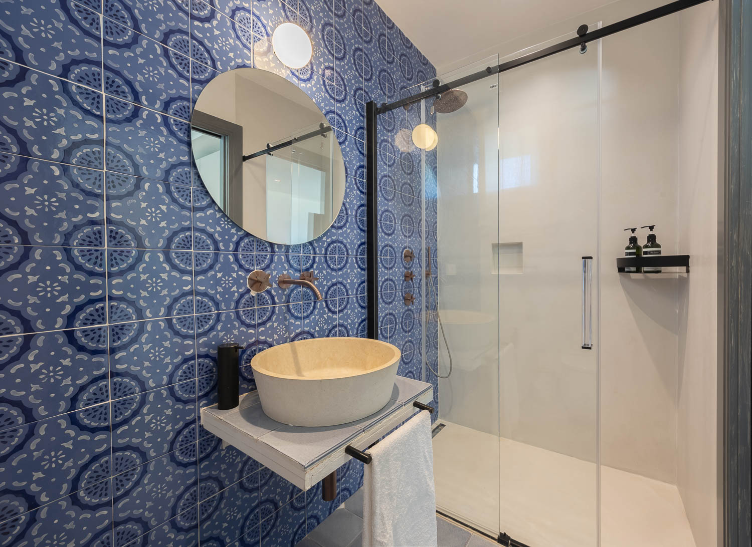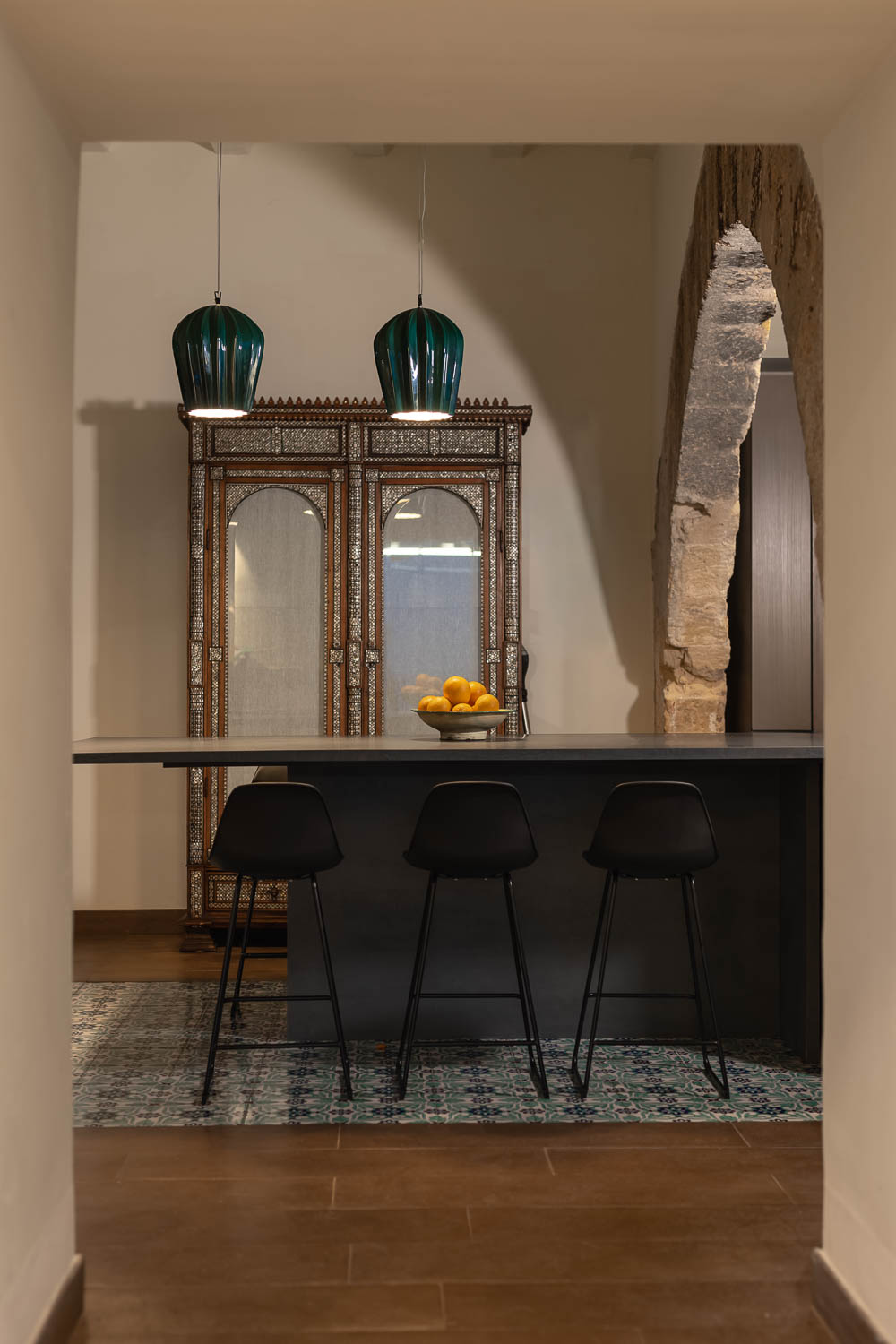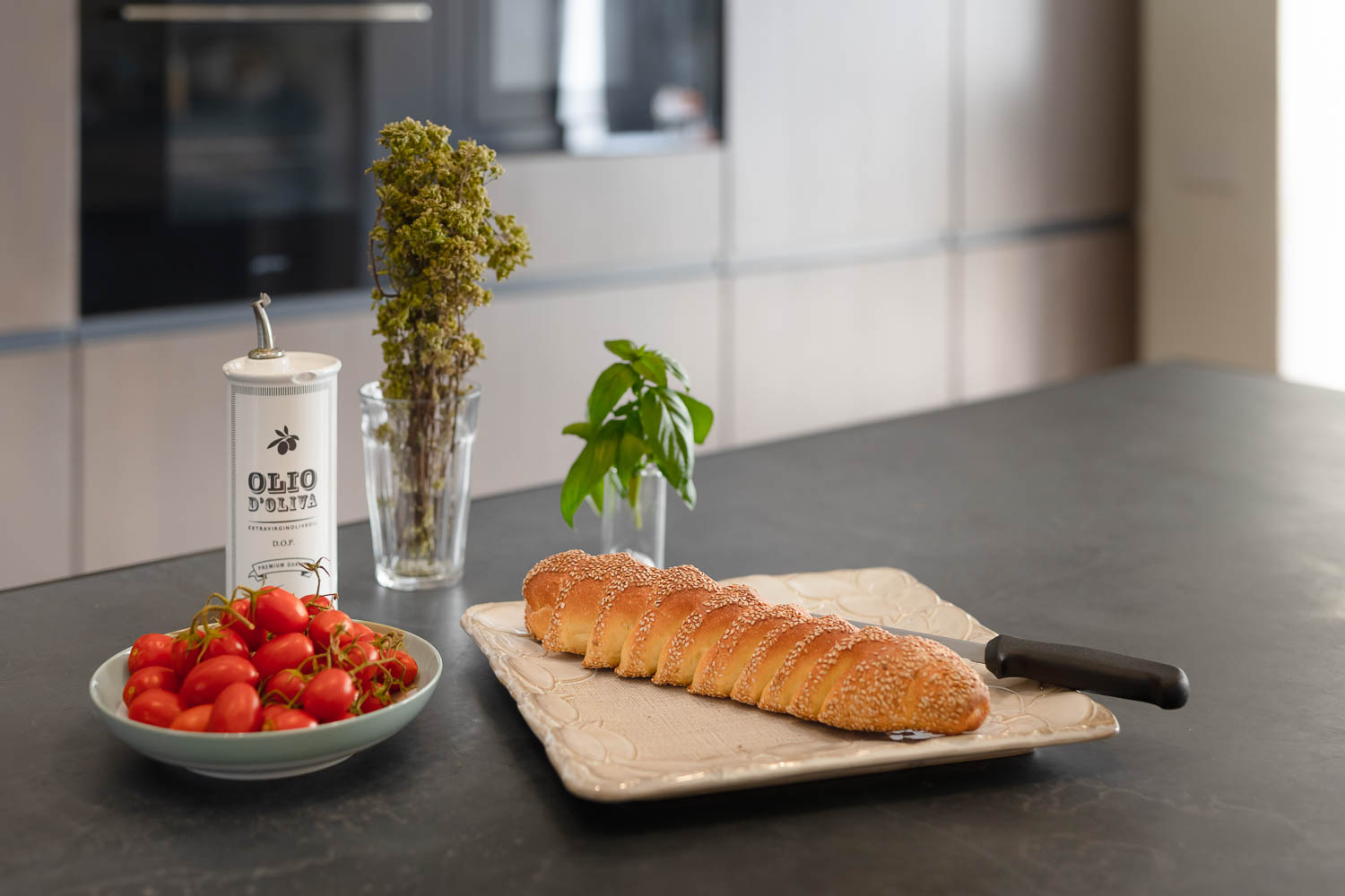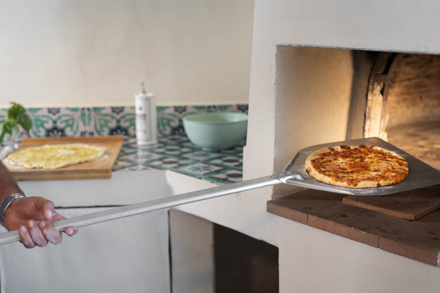 Il design degli interni dialoga con l’esterno attraverso grandi vetrate panoramiche e porticati ombreggiati, mentre la cucina, ampia e accogliente, è dotata di isola centrale e forno a legna tradizionale per momenti di convivialità intimi e informali. Le camere da letto si distribuiscono tra i vari livelli garantendo privacy e indipendenza, con suite panoramiche, bagni en-suite, cabina armadio e accessi riservati che rendono la villa adatta anche a soggiorni più lunghi e riservati.